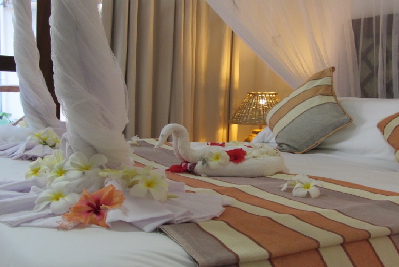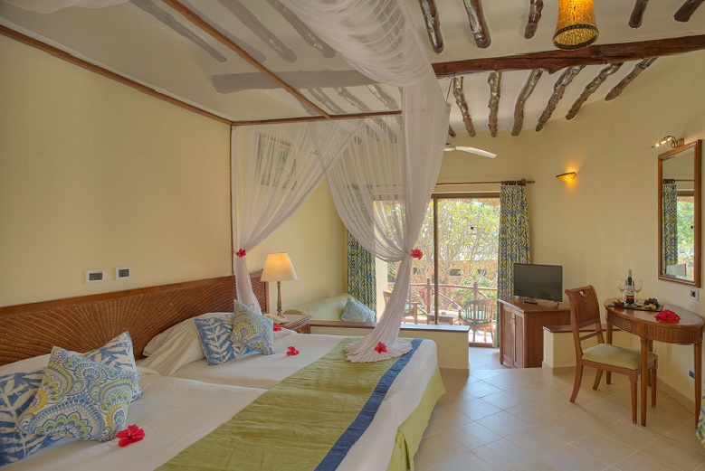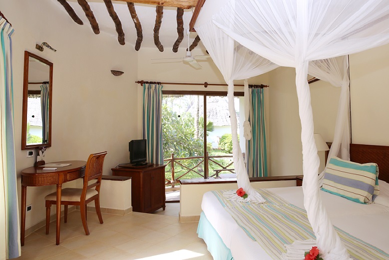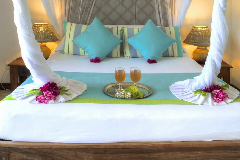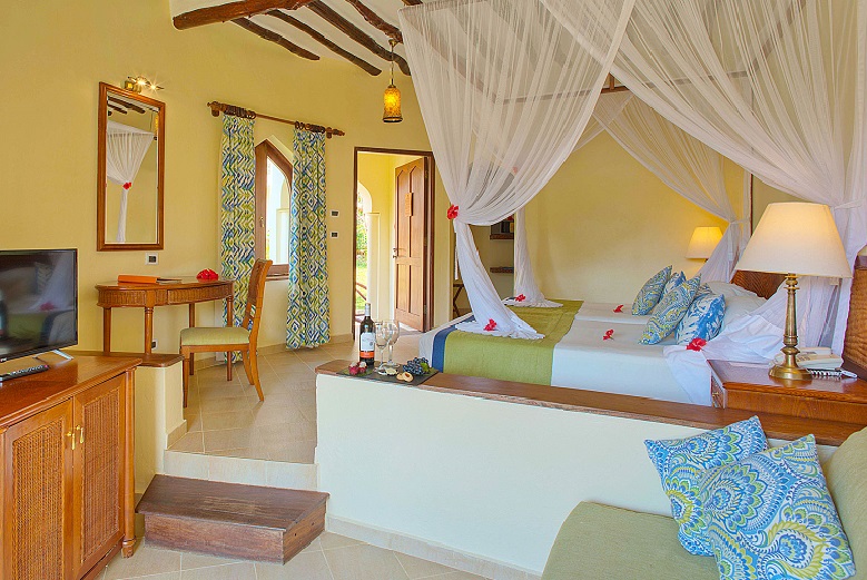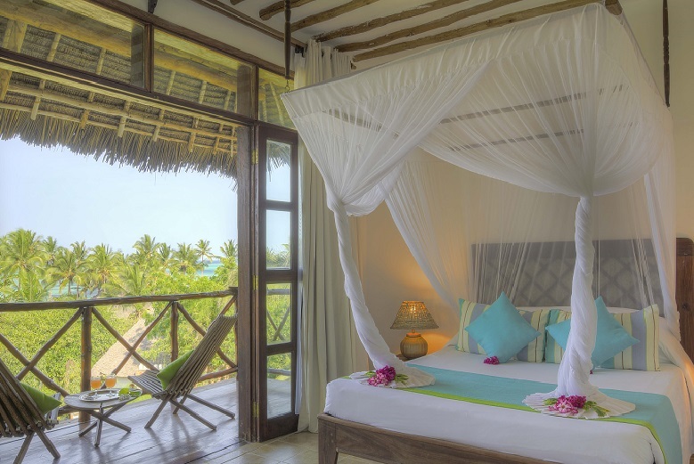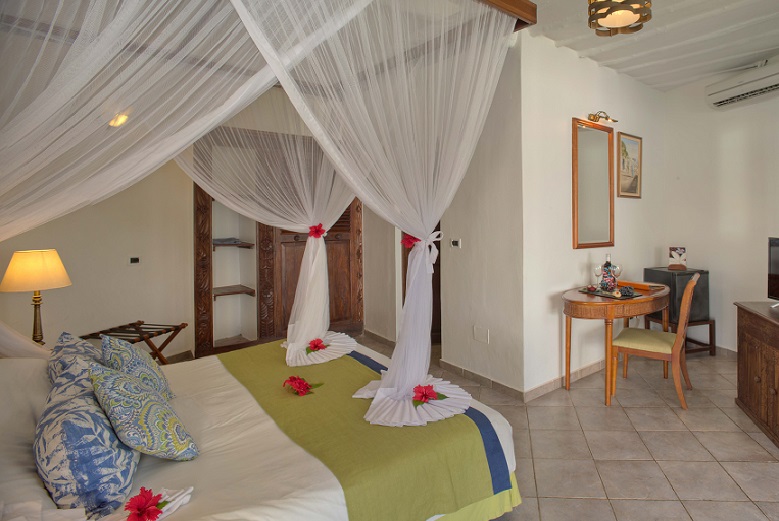 The 24 Baobab rooms are situated in authentic makuti thatched bungalows and enjoy an ocean view over the Resorts tropical gardens. The rooms offer a spacious bedroom, an en-suite bathroom and either a verandah or terrace. The rooms are bright and exquisitely decorated in a traditional Swahili style.